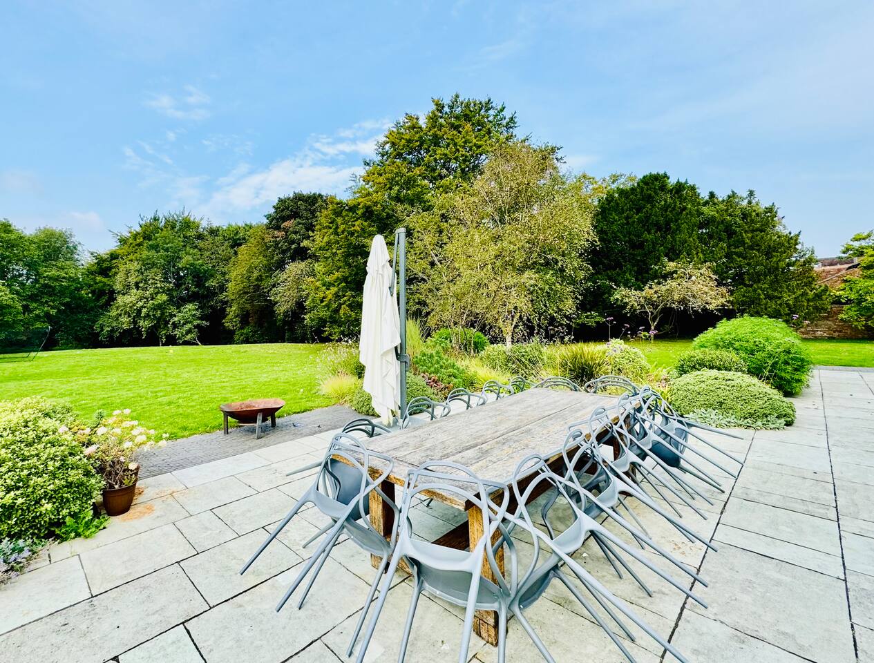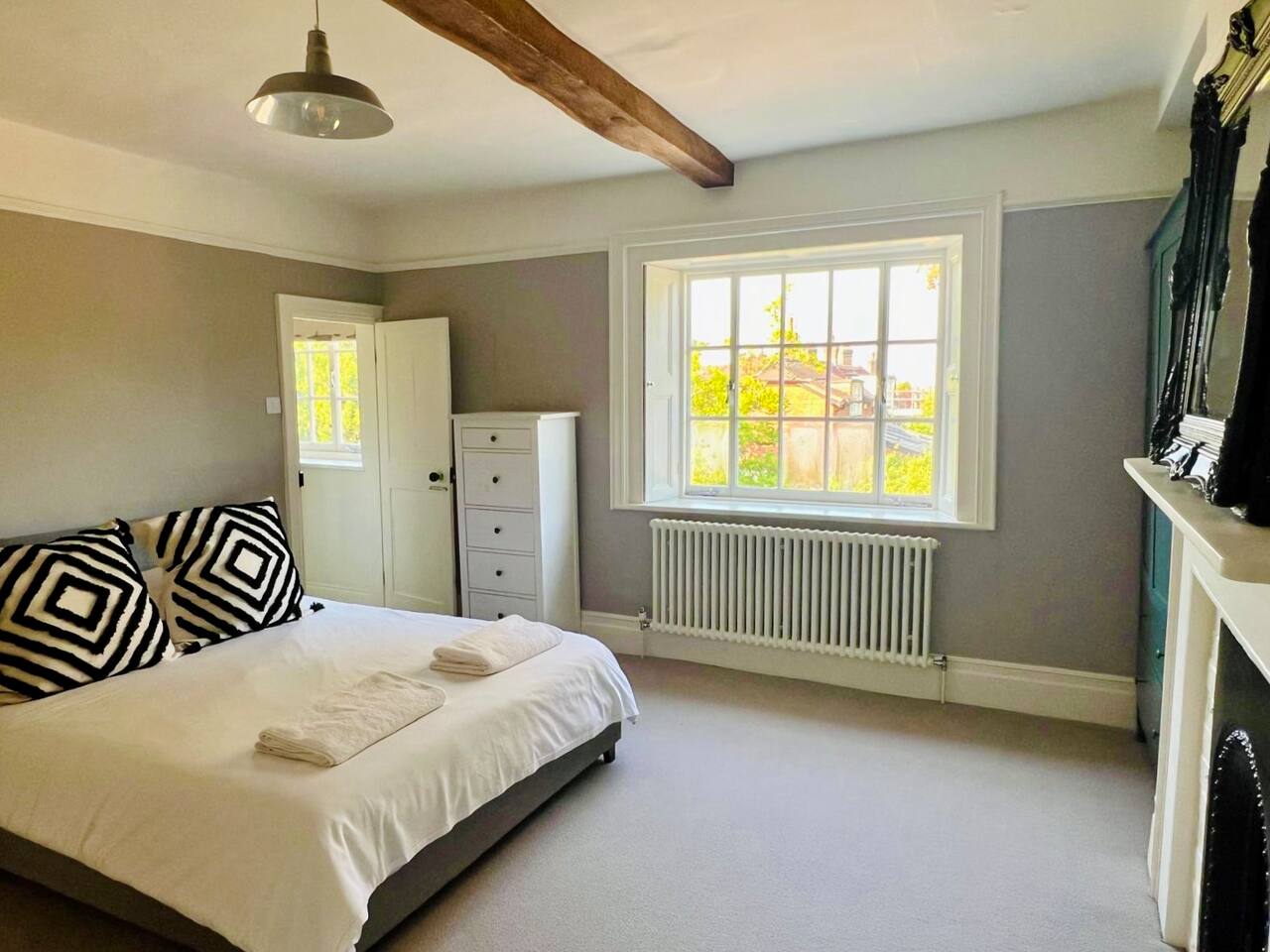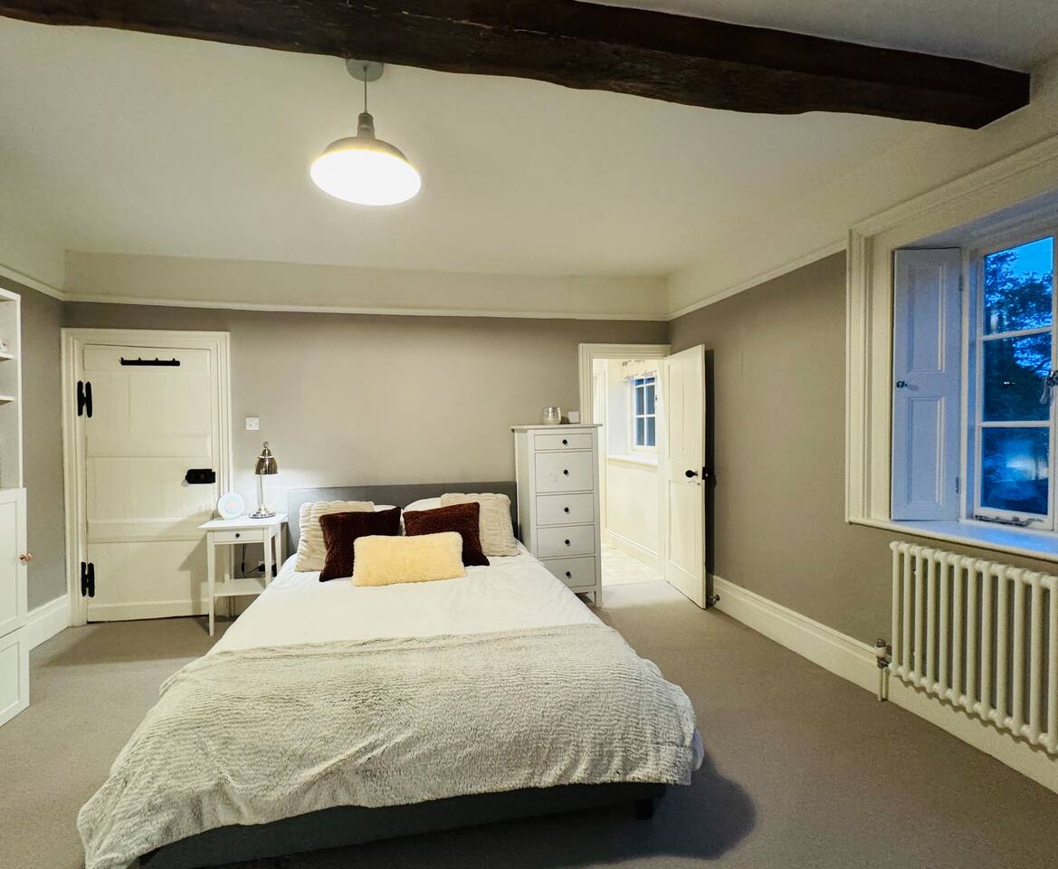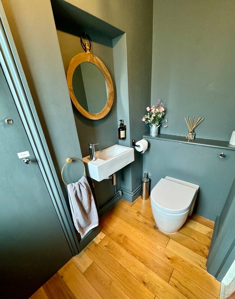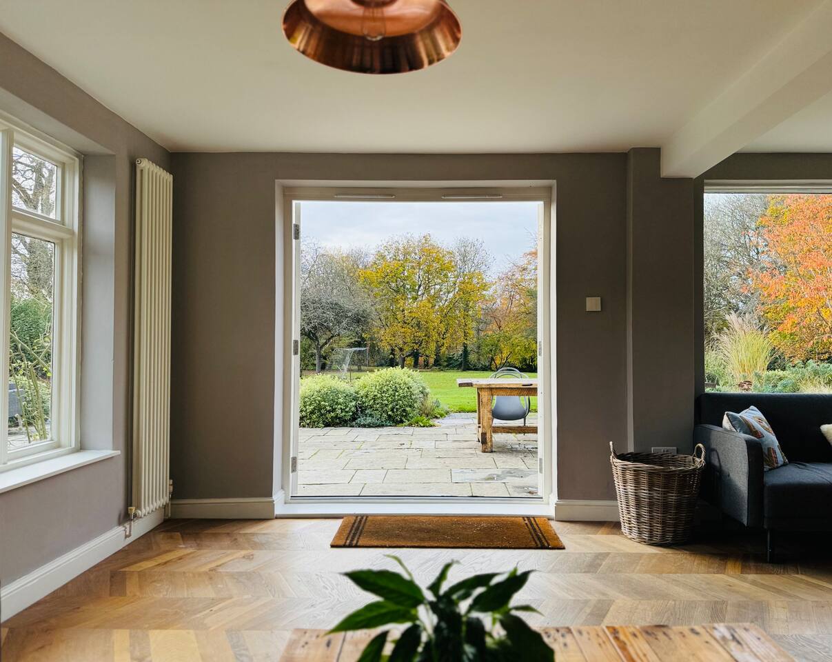 Gorgeous 7 double bedroom Georgian house situated in 2 acres of landscaped grounds on the edge of the idilic South Downs. Conveniently located moments from historic Winchester; with train station, river walks and fabulous pubs - all within walking distance! Perfectly located for exploring all Hampshire has to offer, the New Forest & the South Downs, and the beautiful beaches of Dorset. The house is a beautiful Georgian building tastefully renovated to a high standard, with quality furniture and luxury linens. The house provides spacious luxury accommodation for ups to 14 guests, with 7 large bedrooms - 5 with ensuite, and multiple larges entertaining and family spaces on the ground floor. The house includes: Ground Floor: - Kitchen & dining space for 12, dish washer, American style Siemens fridge freezer, Siemens appliances, nespresso, all usual kitchen equipment, crockery, etc Utility: - Large Samsung washing machine, Bosch dryer Large double lounge: - oak parque flooring, 2 Chesney fireplaces & woodburners, 2 x 3 seater sofas, 4 armchairs, large Samsung HD tv. Snug:- Sofa, armchair, samsung tv Conservatory: - 2 large sofas seating up to 9, with views over the landscaped garden. WC & cloak room. First Floor: Bedroom 1 - Super king sized bed with ensuite bathroom Bedroom 2 - King sized bed with ensuite shower room Bedroom 3 - King sized bed with ensuite bathroom - also family bathroom. Bedroom 4 - King sized bed with ensuite shower room shared Bedroom 5 Bedroom 5 - King sized bed with ensuite shower room shared Bed 4 Third Floor:- Bedroom 6 - Double sized bed Bedroom 7 - Double sized bed Outside: - Gorgeous landscaped outside dining area with seating for 12, a large outside sofa, sun loungers, large chimnea, fire pit, gas bbq. All leading onto 1.5 acres of lawned garden surround by mature trees, pleached espalier trees, and Magnolia. The electric gated car access leads to private off street parking in front of the house for several cars. Please note, this gate is shared with the adjacent cottage. Winchester city centre can be reached with a 10 minute drive. Winchester is a perfect sized cathedral city, with history, boutique shops, and some amazing restaurants & bars. For foodies the restaurants include: The Ivy, Rick Steins, The Chisel Rectory, and the incredible Kyoto Kitchen. The New Forest is a 20 minute drive, and the beach can be reached in 25 minutes. Bournemouth is around 35 minutes. Twyford is a few minutes drive from the M3 (Junc. 11). Shawford train station is a few minutes walk from the house no