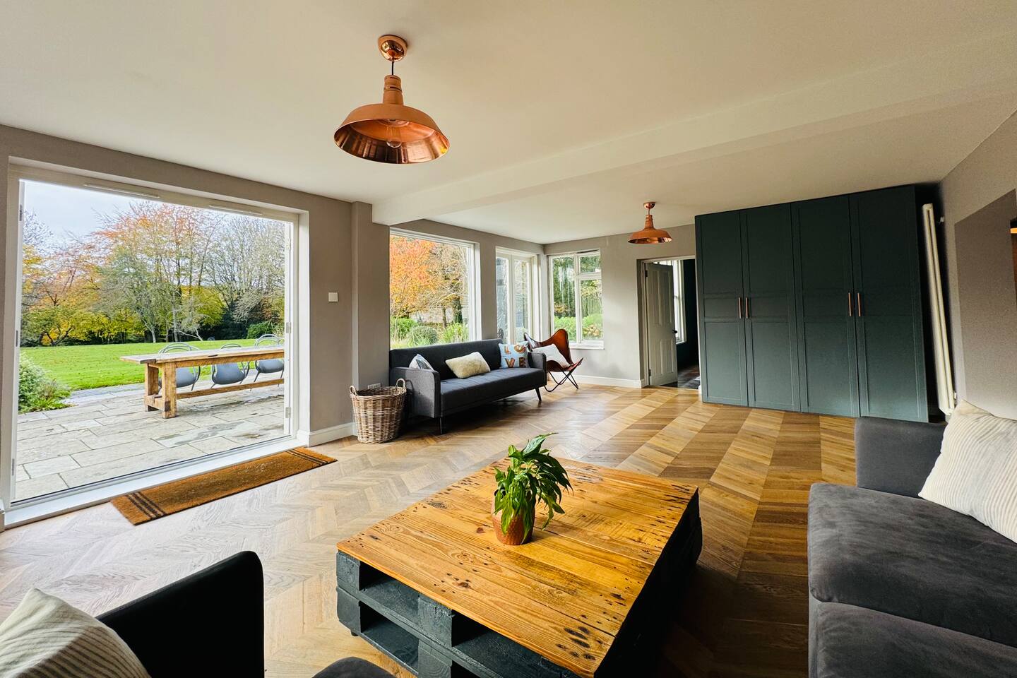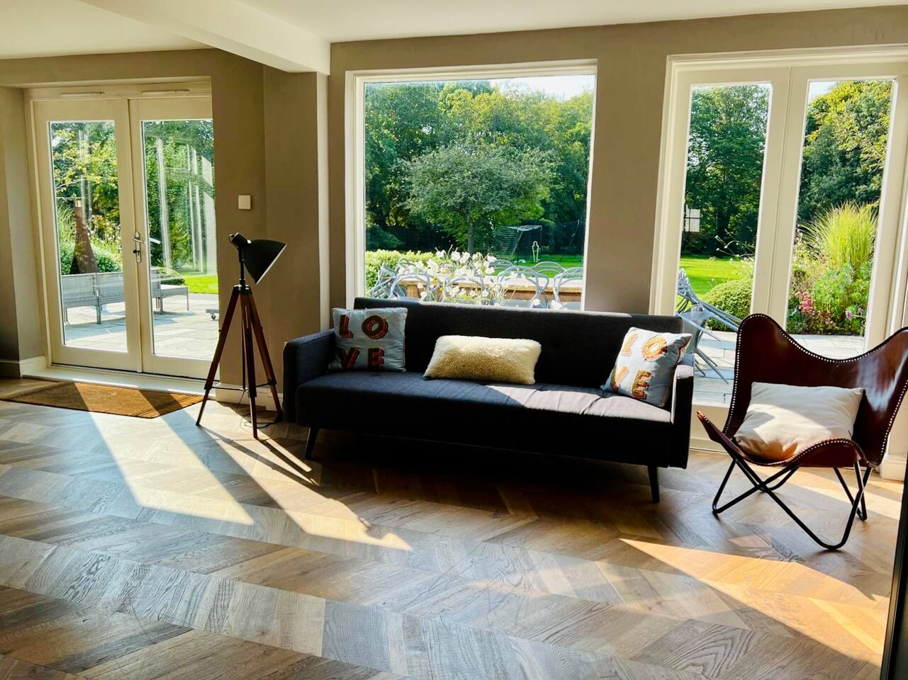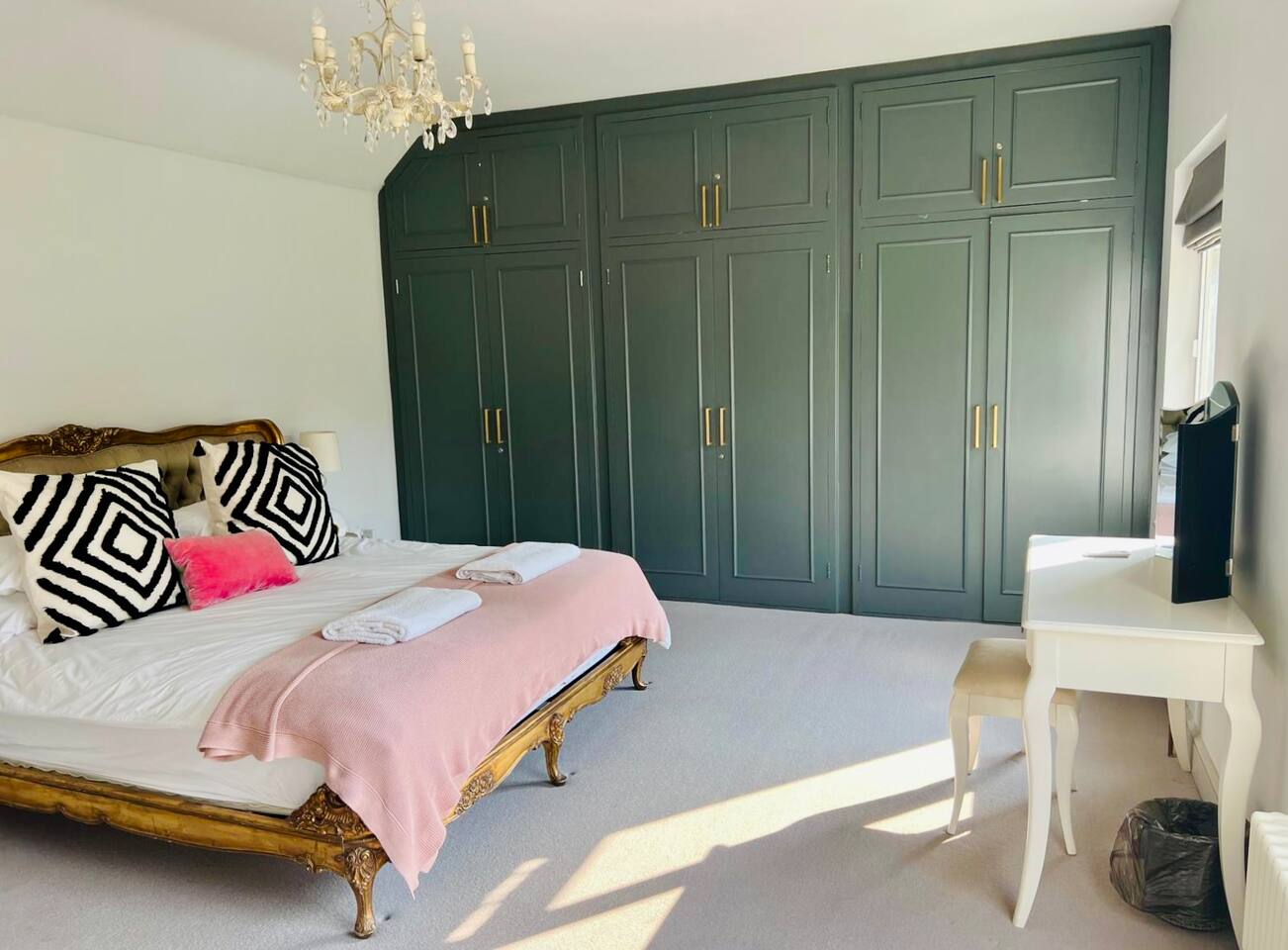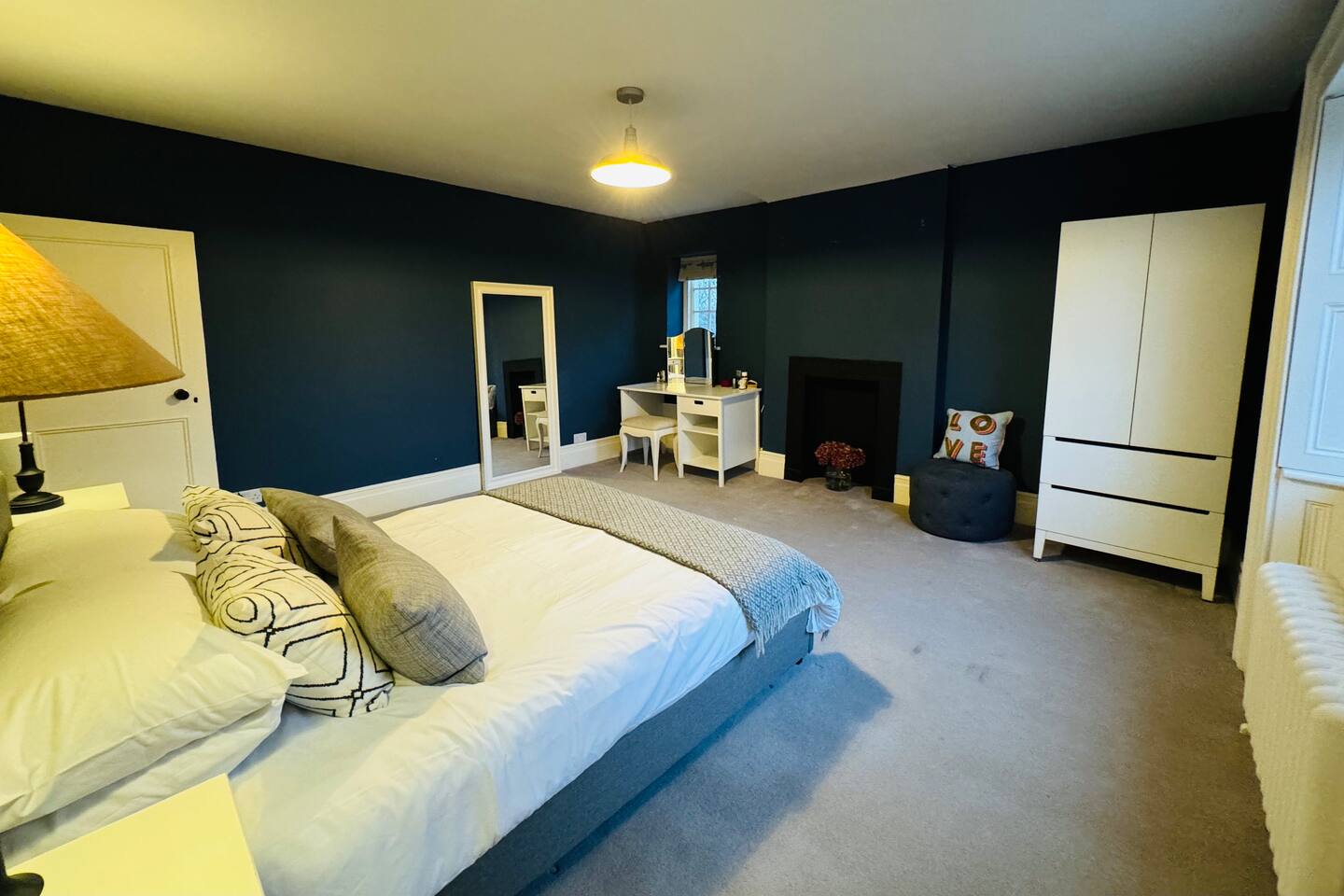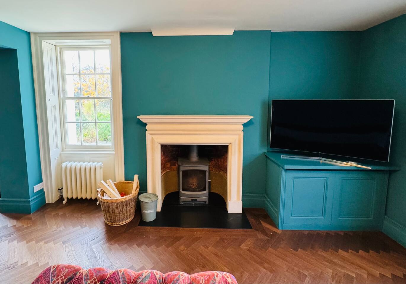 Gorgeous 7 double bedroom Georgian house situated in 2 acres of landscaped grounds on the edge of the idilic South Downs. Conveniently located moments from historic Winchester; with train station, river walks and fabulous pubs - all within walking distance! Perfectly located for exploring all Hampshire has to offer, the New Forest & the South Downs, and the beautiful beaches of Dorset. The house is a beautiful Georgian building tastefully renovated to a high standard, with quality furniture and luxury linens. The house provides spacious luxury accommodation for ups to 14 guests, with 7 large bedrooms - 5 with ensuite, and multiple larges entertaining and family spaces on the ground floor. The house includes: Ground Floor: - Kitchen & dining space for 12, dish washer, American style Siemens fridge freezer, Siemens appliances, nespresso, all usual kitchen equipment, crockery, etc Utility: - Large Samsung washing machine, Bosch dryer Large double lounge: - oak parque flooring, 2 Chesney fireplaces & woodburners, 2 x 3 seater sofas, 4 armchairs, large Samsung HD tv. Snug:- Sofa, armchair, samsung tv Conservatory: - 2 large sofas seating up to 9, with views over the landscaped garden. WC & cloak room. First Floor: Bedroom 1 - Super king sized bed with ensuite bathroom Bedroom 2 - King sized bed with ensuite shower room Bedroom 3 - King sized bed with ensuite bathroom - also family bathroom. Bedroom 4 - King sized bed with ensuite shower room shared Bedroom 5 Bedroom 5 - King sized bed with ensuite shower room shared Bed 4 Third Floor:- Bedroom 6 - Double sized bed Bedroom 7 - Double sized bed Outside: - Gorgeous landscaped outside dining area with seating for 12, a large outside sofa, sun loungers, large chimnea, fire pit, gas bbq. All leading onto 1.5 acres of lawned garden surround by mature trees, pleached espalier trees, and Magnolia. The electric gated car access leads to private off street parking in front of the house for several cars. Please note, this gate is shared with the adjacent cottage. Winchester city centre can be reached with a 10 minute drive. Winchester is a perfect sized cathedral city, with history, boutique shops, and some amazing restaurants & bars. For foodies the restaurants include: The Ivy, Rick Steins, The Chisel Rectory, and the incredible Kyoto Kitchen. The New Forest is a 20 minute drive, and the beach can be reached in 25 minutes. Bournemouth is around 35 minutes. Twyford is a few minutes drive from the M3 (Junc. 11). Shawford train station is a few minutes walk from the house no